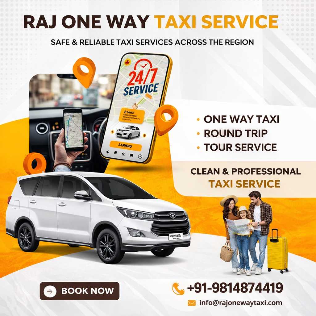 Raj One Way Taxi Service is a reliable and customer-oriented taxi service provider based in Ludhiana, Punjab. We specialize in safe, comfortable, and affordable travel solutions for individuals, families,